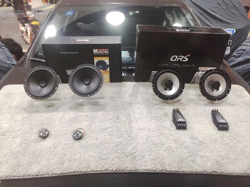 后平臺的兩個中低音我們更換成了兩個同軸喇叭,同軸的好處就是中低高音為一體的。省去了加裝高音單元的費用。安裝前也對平臺做了隔音的處理,