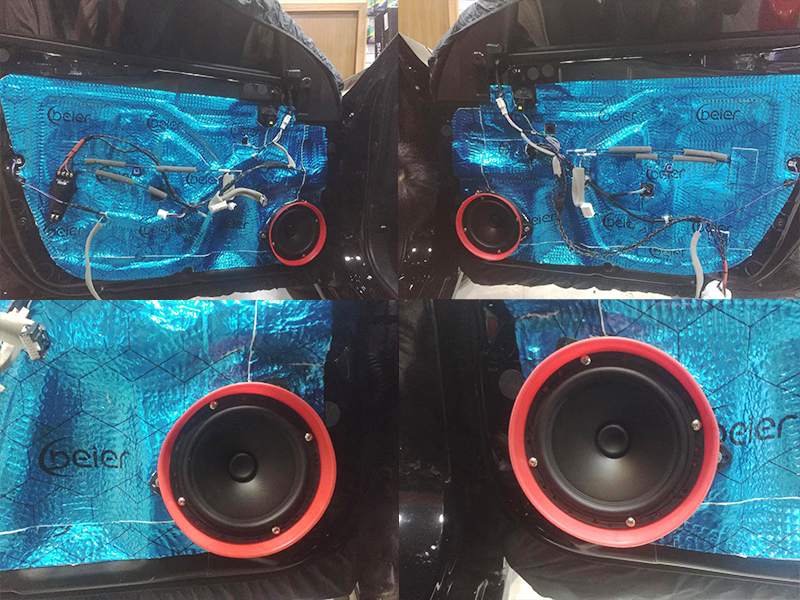 第二層隔音的作用是讓你的車門形成一個箱體,聲音的傳播更加渾厚和減少失真。密封性也能起到很好的隔音效果。喇叭的安裝我們有專用的喇叭墊和防水喇叭墊。