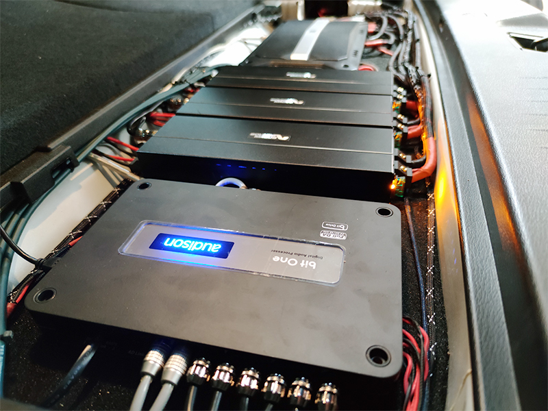 接下來就是對專業(yè)店師傅音響手藝進行評分了,因為車主對音響要求非常的高,所以使用了4臺大功率功放和歐迪臣bitone處理器搭配德國曼斯全套三分頻喇叭
