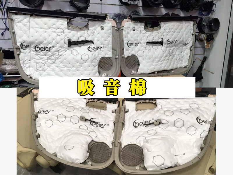 這是第一層隔音,使用的是貝爾的隔音藍膜,又名是貝爾溫莎減震板,書面意思就是減少車門異響,高速行駛中產(chǎn)生的大范圍震動等,對風噪也有一定的降噪作用,同時也增強了汽車內(nèi)部的傳播環(huán)境,減少失真。