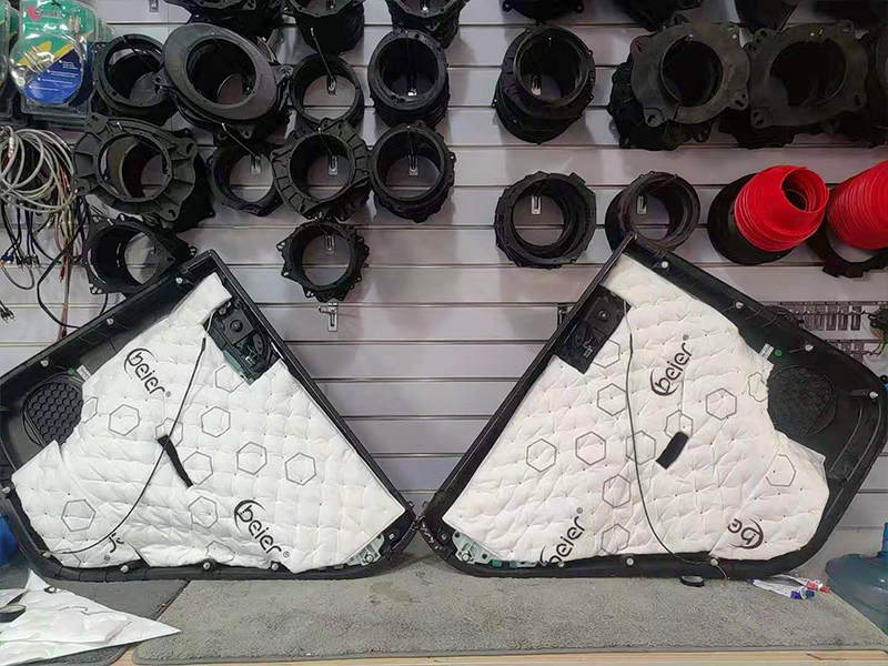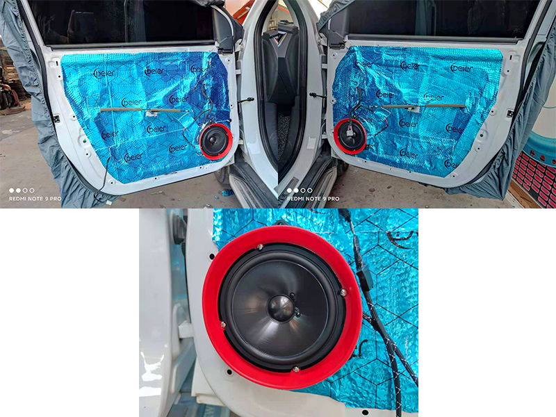 做完一二層隔音后就可以安裝喇叭了!使用專車專用的喇叭墊。安裝細節(jié)你們也可以看一下。接下來是做吸音棉。主要作用也是降噪和隔音。裝好的喇叭!必定是需要好的隔音環(huán)境來幫助傳播的。