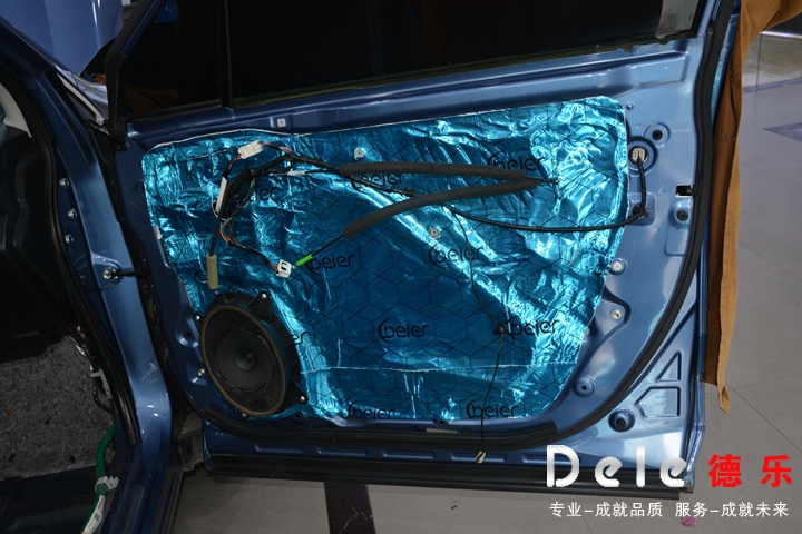 外層隔音后將門板密封,代替之前那張膜起到最基本的防水作用,還能有效阻隔外界噪音向駕駛艙的傳入,并且提升安裝在門板上喇叭的聲色質(zhì)量,對音響效果提升更顯著。