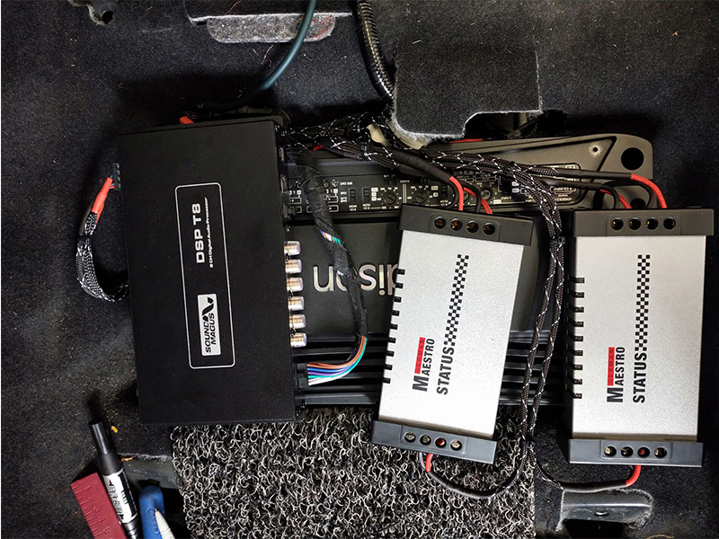此車音響配置:前聲場使用曼斯特SV6509,中頻溫暖醇厚,低頻下潛深,能很好表現(xiàn)細(xì)微的混響信號,中高音明朗細(xì)膩,有很好的穿透力,亮而不硬,恰倒好處。 后聲場采用性價比高的CC6508,補(bǔ)充中頻,低音喇叭選用JBL,低音下潛深,低頻有力,動態(tài)強(qiáng)。歐迪臣SR4功放推前后聲場喇叭,圣美歌VS800.1推動低音炮,在解析力強(qiáng)的歐迪臣推動下,曼斯特淋漓盡致的發(fā)揮。整個系統(tǒng)聲音通透,甜美,低音深沉強(qiáng)勁,人聲,流行音樂都能很好的表達(dá)。
