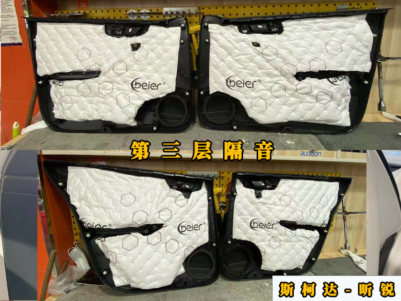 首先的話要先把隔音給做好,原車門板的厚度是很薄的,很容易產(chǎn)生共振,隔音效果也不怎么好,高速行駛的的話風(fēng)噪是很明顯的。第一層隔音就是增加門板的厚度來減少共振。