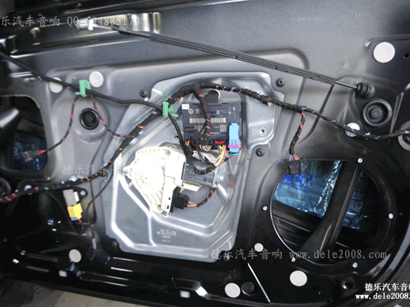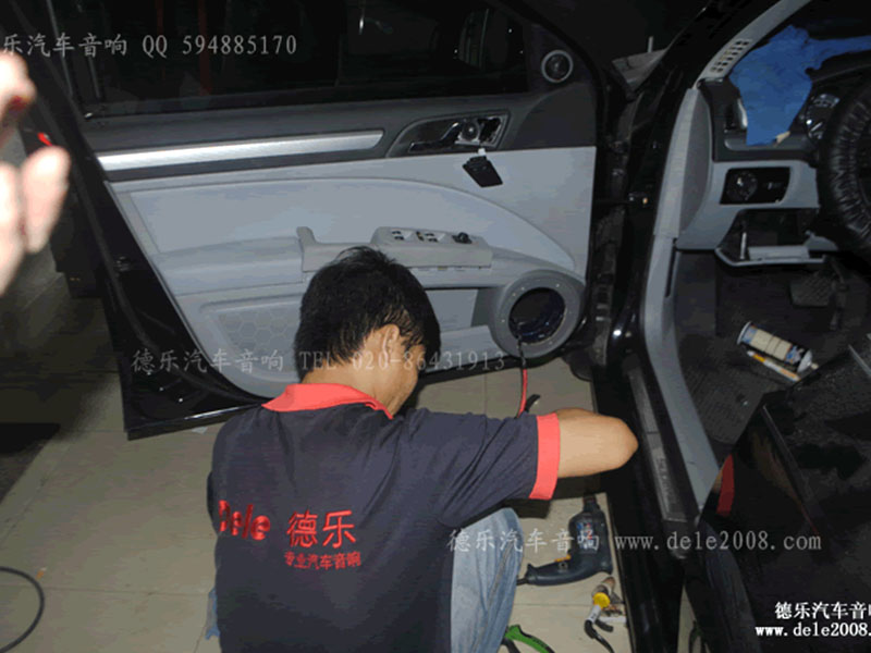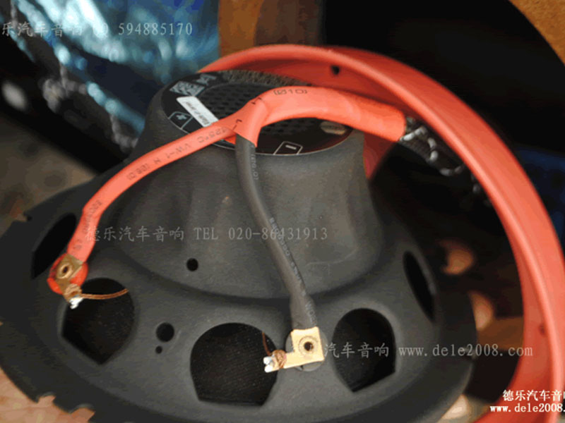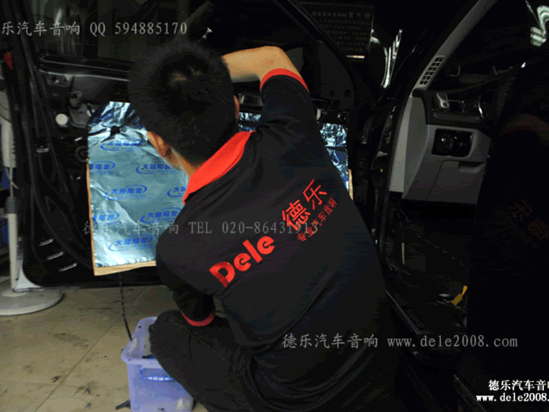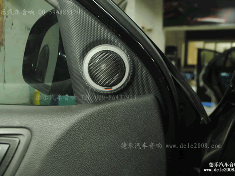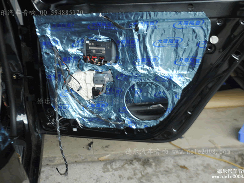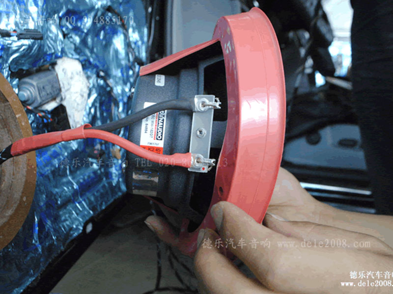 由于昊銳原車前門喇叭位置比較靠后,使得駕駛座和副駕位上的聲場并不是很好,因此前門喇叭進行倒膜,把喇叭往前移動,聲場變得更加自然