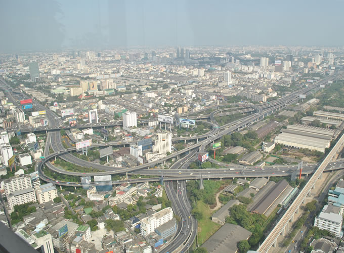 在曼谷73層樓頂用餐時(shí)拍攝的曼谷一角,