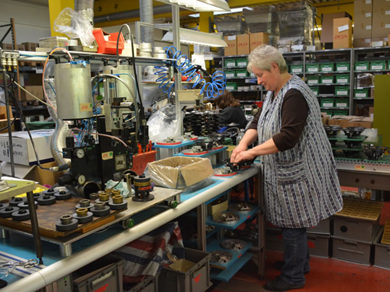 這是把喇叭盆與盆架進(jìn)行組裝的工位,