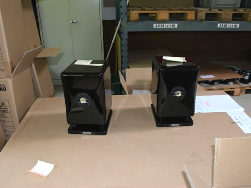 參觀過(guò)程序中經(jīng)過(guò)家用音響的庫(kù)存區(qū),有各種立式音箱,書(shū)架音響,電腦音箱